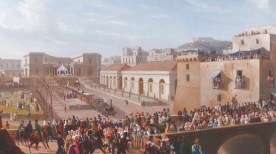 Salvatore Fergola, Arrivo al Granatello del treno inaugurale, 1840 (particolare)