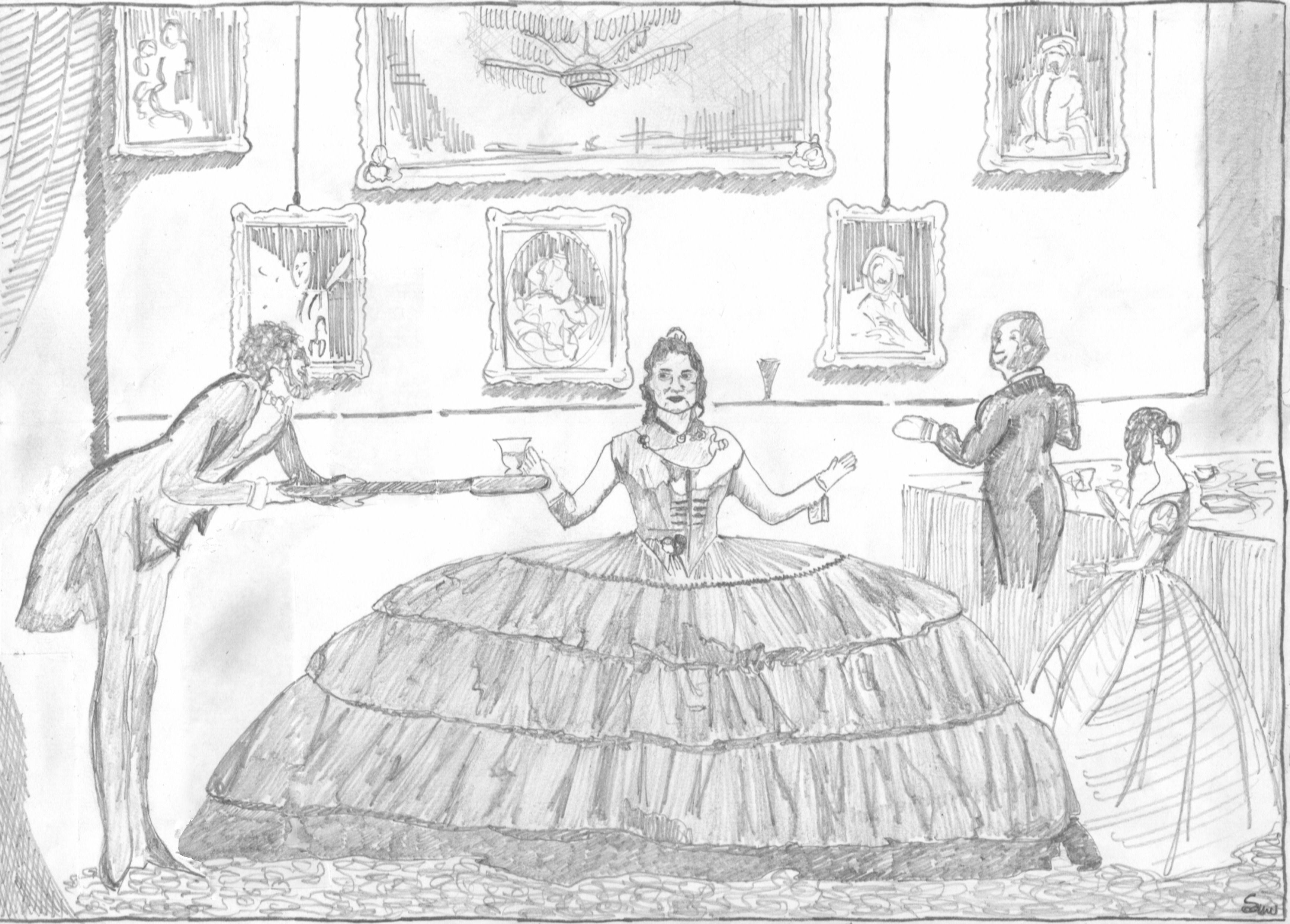 Durante tutto l’Ottocento la moda degli abiti femminili è passata da gonne strettissime che quasi impedivano di camminare, a gonne ampissime che quasi impedivano di avvicinarsi ad altre persone, passando e ripassando per tutti i vari punti intermedi verso l’uno o l’altro estremo.